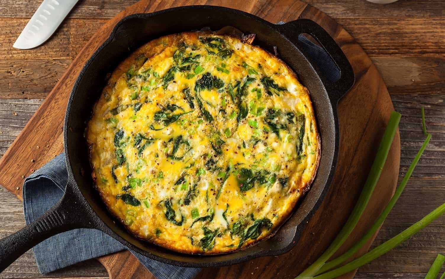 The night before: Cook greens with chopped onion and garlic until tender. Spread in a greased ovenproof dish. Crack and scramble the eggs, then refrigerate in an airtight container.