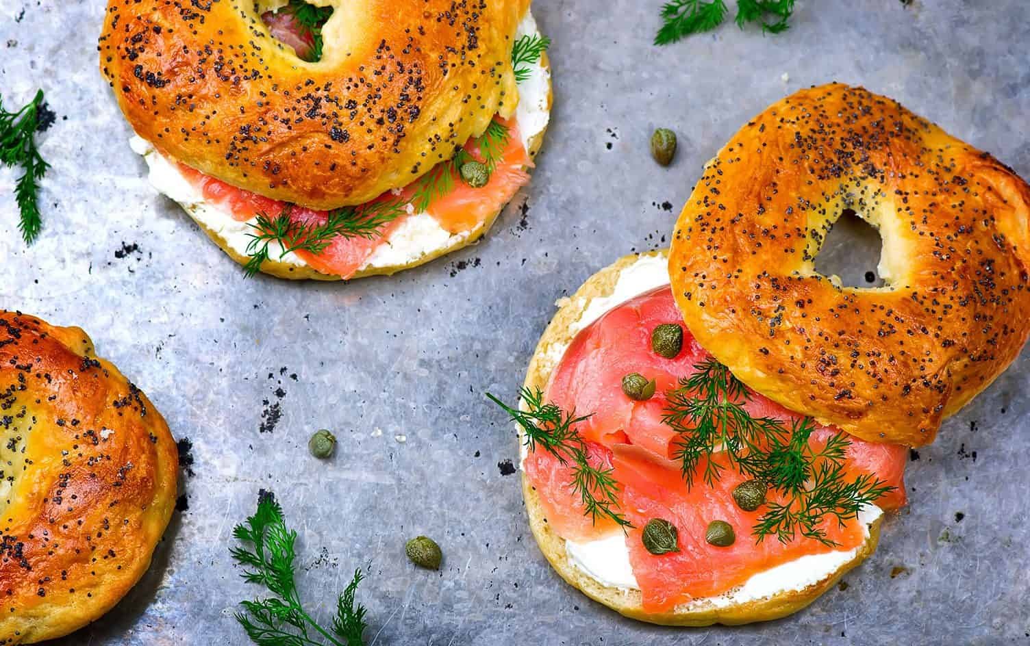 The night before: Fill a large dish with all the toppings – capers, sliced ​​red onion, tomato slices, dill leaves, etc. – add cream cheese and smoked salmon. Include salad leaves on the dish if someone would rather have a salmon wrap. Cover and chill.
