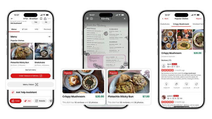 In addition to the new AI assistant, Yelp is rolling out a few quality-of-life updates to the app. Last year, it launched the ability for people to scan a menu and see what dishes look like through photos posted by other users. Now users can look at these dishes in the app while scanning a menu.